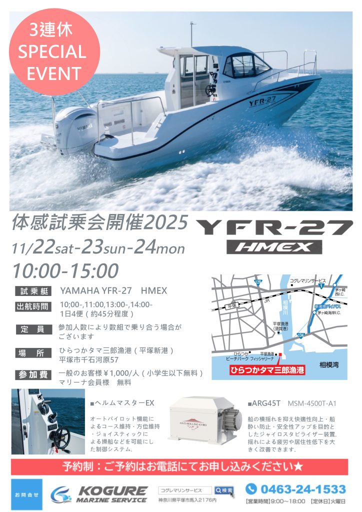 さて! そんな11月下旬の三連休にヤマハYFR27-HMEX の体感試乗会を開催いたします!!
